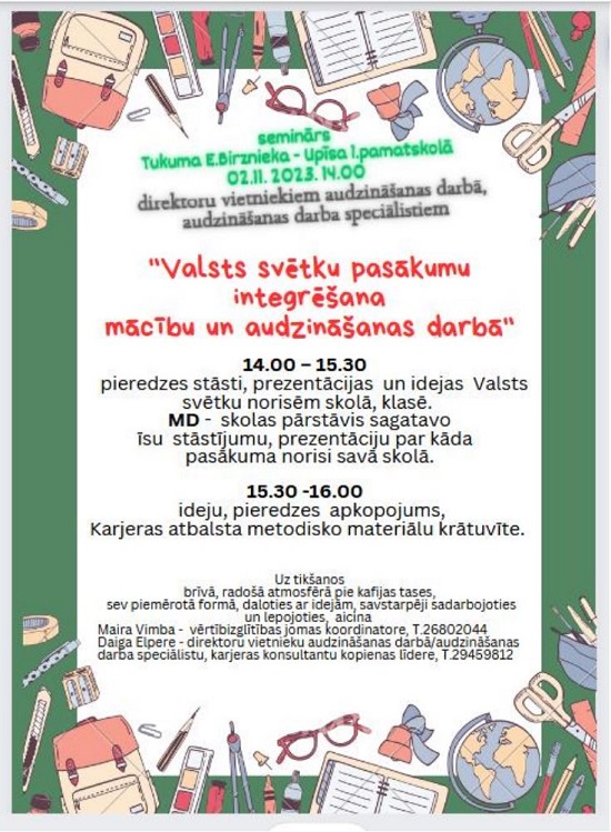 28.09.2023., 14.00 Tukuma E.Birznieka - Upīša 1.pamatskolā.